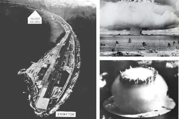 Enewak atoll capped to contain the radioactivity, islanders take to their deck chairs to watch, the mushroom cloud rises.