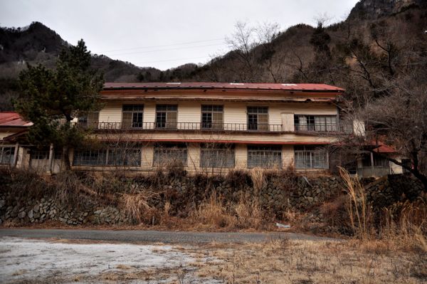 | Nichitsu Ghost Town stretches dead and decaying for over a kilometer along its switch-backed mountain road, spreading from the barely-functioning mine shacks at the mouth of the last rough-cut tunnel, up past the Junior High School, twisting up past the white bulge of a hill of lime-chips, past the Doctor`s office hidden somewhere in the thicket of buildings, up to the Lower School, dorm, and warren of walkways, all still and silent but for the steady low gnawing of nature, and time. | Nichitsu is a tiny little village huddled in a chilly mountain pass, far from the nearest population center. Come an emergency the Doctor’s office would have been the only ER, so its few rooms were crammed full of equipment, now forgotten and lying in shadow: rusted iron operating tables, toppled X-ray machinery, documents sheafed and scattered everywhere, surgical clamps in heaps and organs floating in formaldehyde jars. |